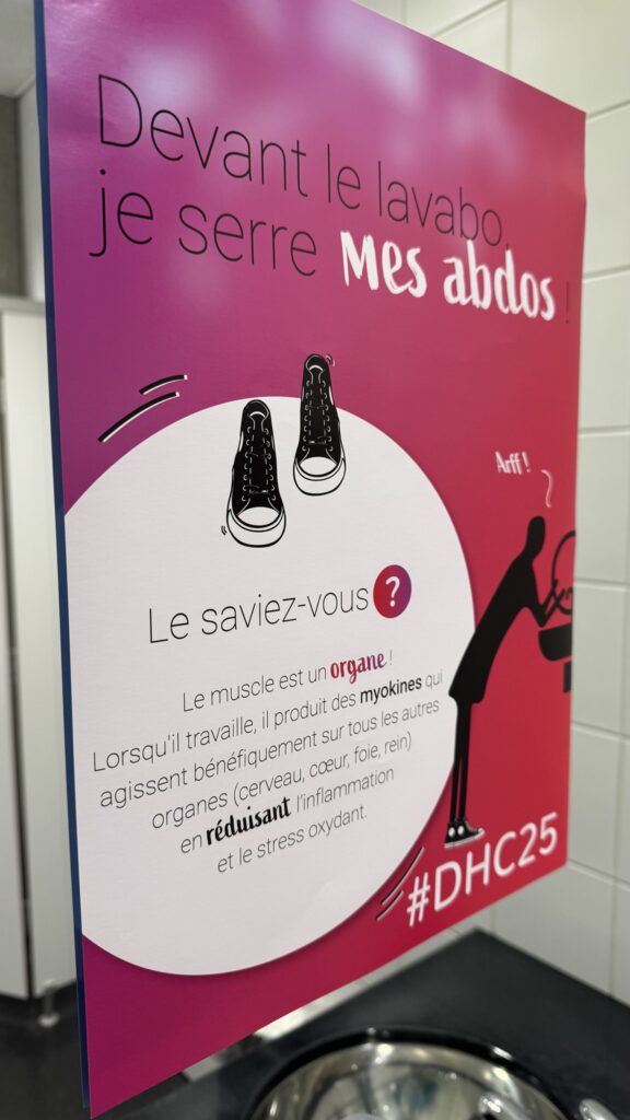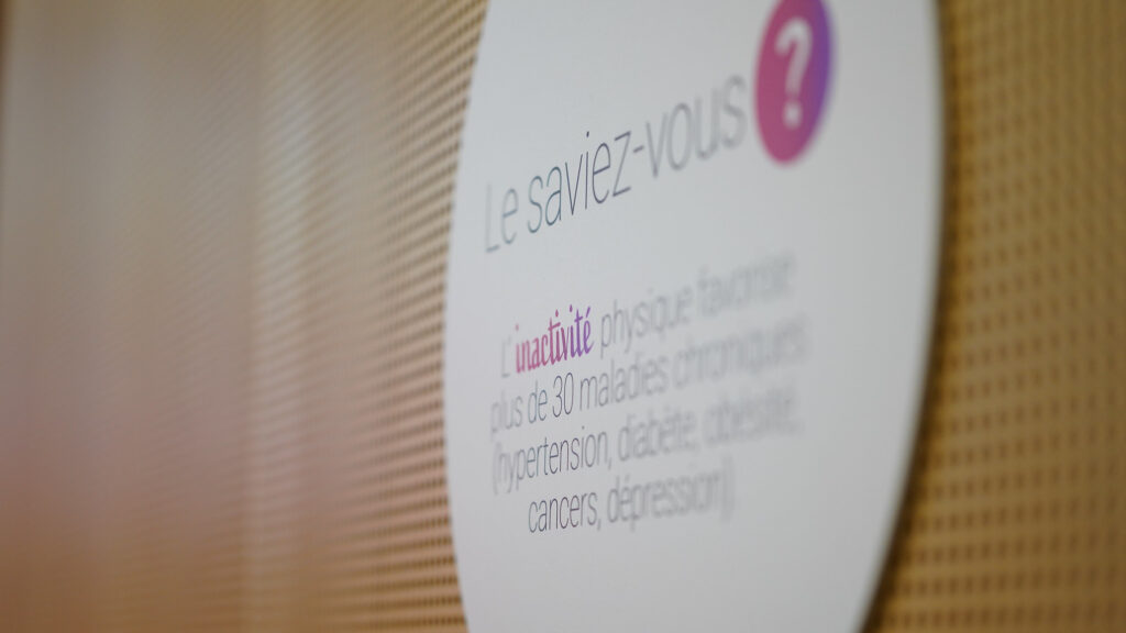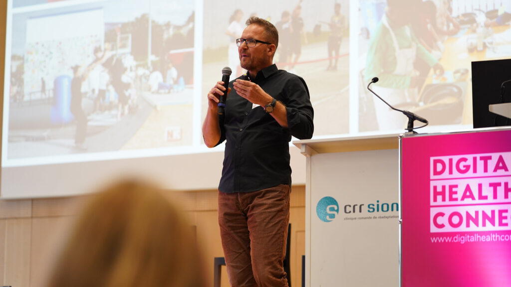 Lors de la 13e édition de la conférence annuelle, Digital Health Connect, un parcours actif éphémère invitait les participants à bouger de leur arrivée à la Clinique romande de réadaptation jusqu’à la salle de conférence.